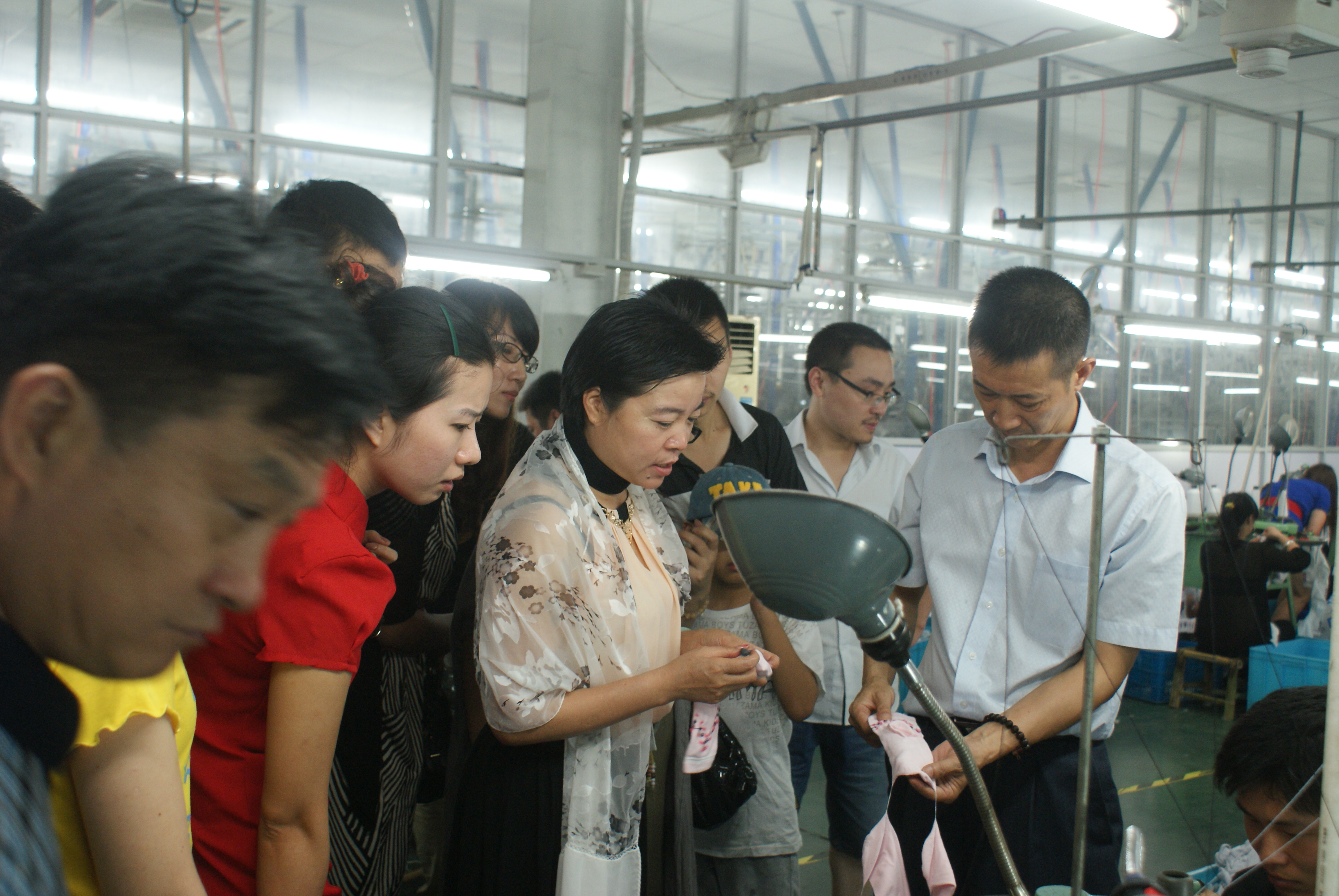 與會人員首先參觀了浪莎三期工業園,了解了浪莎集團的發展狀況、企業文化,與襪子、內衣生產的每一道環節來了一次親密接觸。參觀過程中,人大校友、巨龍箱包董事長邵寶玲與工作人員細心交流。