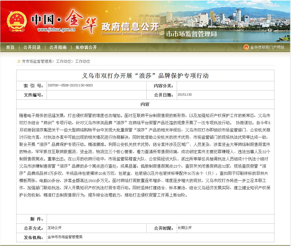 義烏市雙打辦開展“浪莎”品牌保護(hù)專項行動