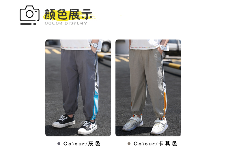 浪莎男童褲子運動長褲子兒童裝2021新款夏裝洋氣中大童百搭束腳褲