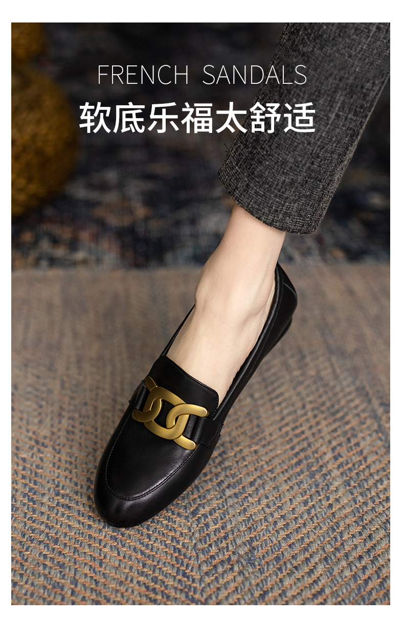 樂福鞋女真皮2021爆款鞋子春英倫風圓頭單鞋一腳蹬黑色平底小皮鞋