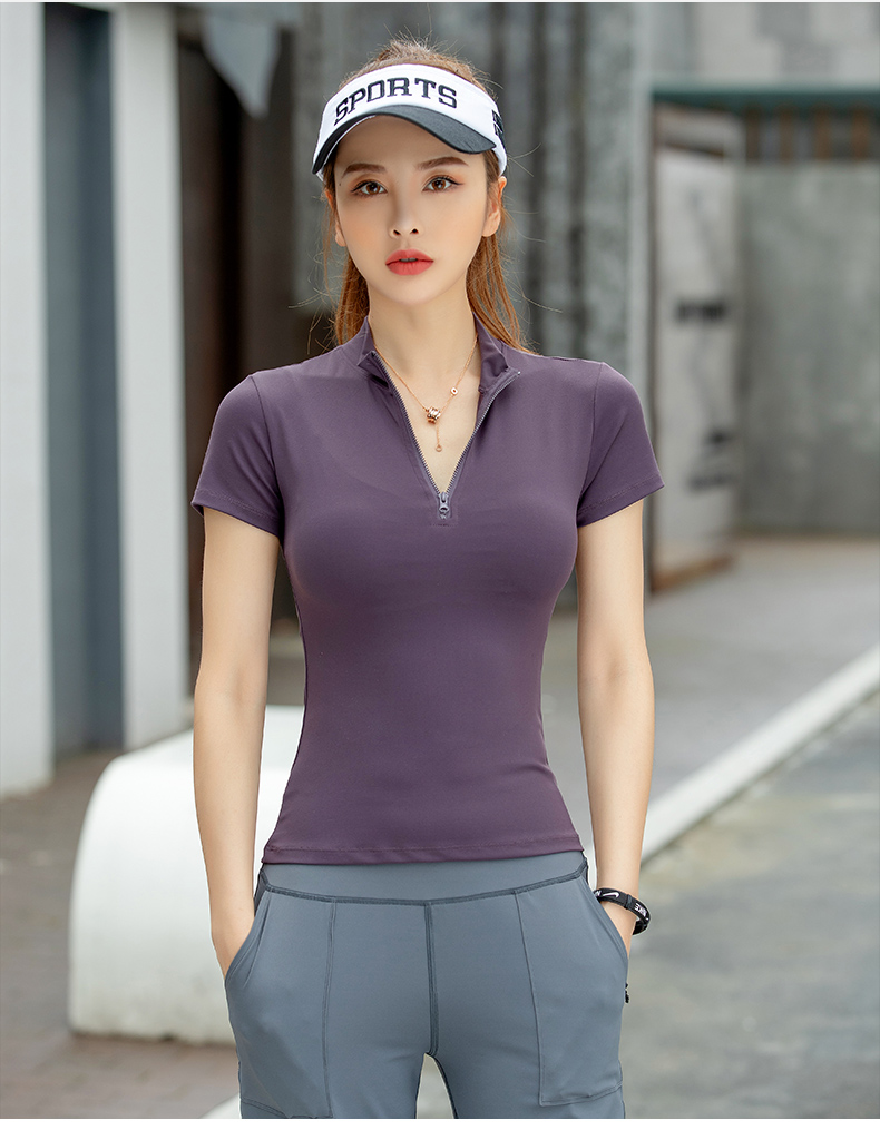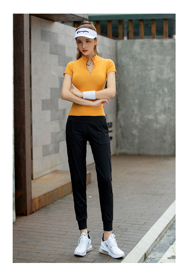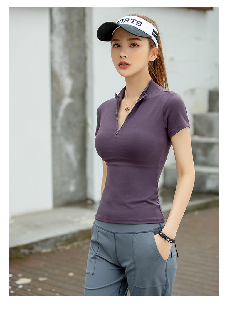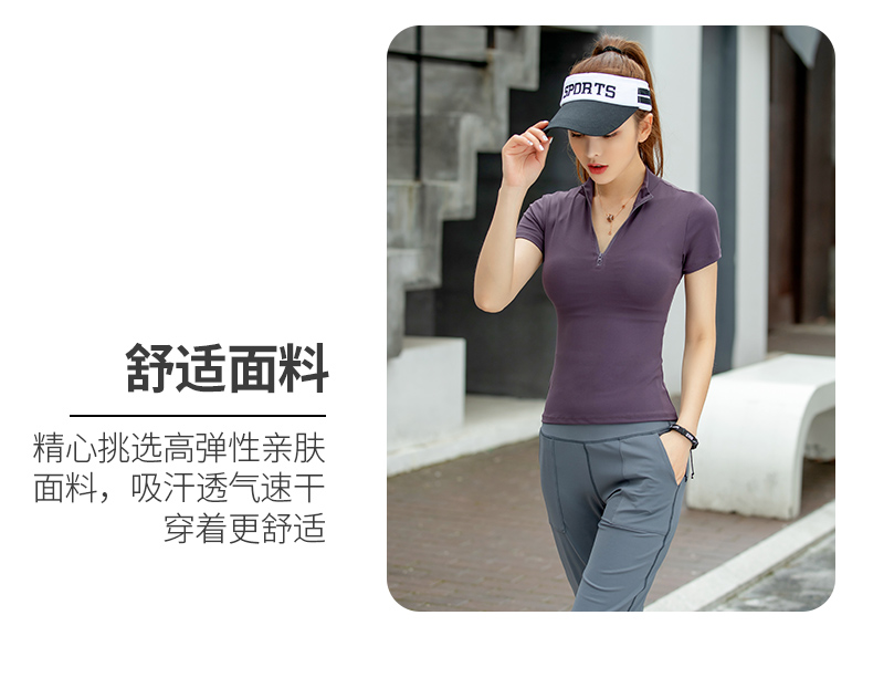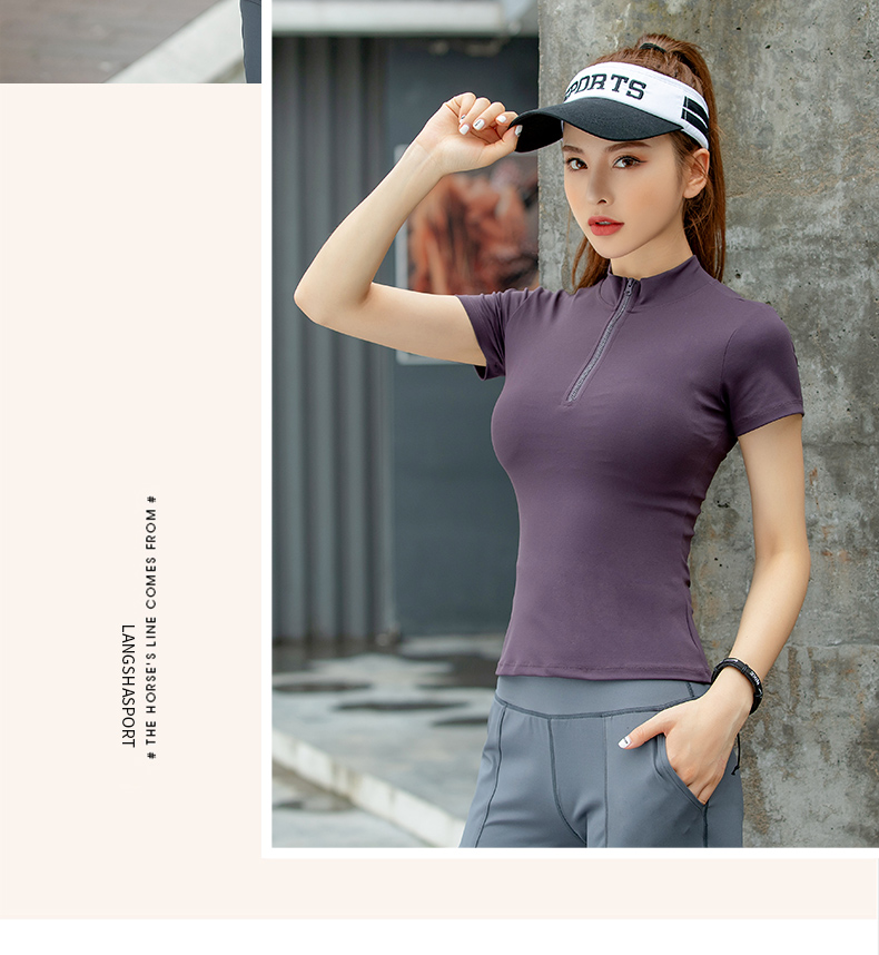 浪莎運(yùn)動(dòng)短袖女速干透氣緊身夏季性感V領(lǐng)瑜伽健身服跑步上衣T恤