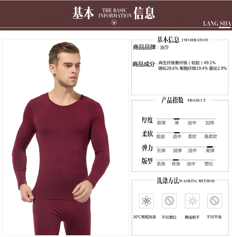 浪莎無縫美體秋衣秋褲套裝男士薄款高彈打底秋冬青年修身保暖內(nèi)衣